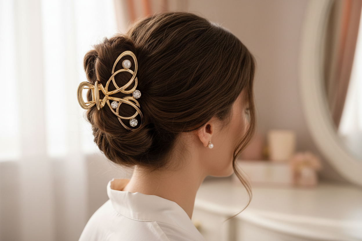 Butterfly Hair Claw Clip with Pearl or Rhinestone Detail